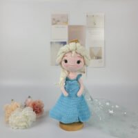 Jégkirálynő hercegnő horgolt baba – kézzel készített hercegnős plüss figura, gyönyörű lánybaba, tökéletes karácsonyi ajándék testvérnek, ünnepi ajándék